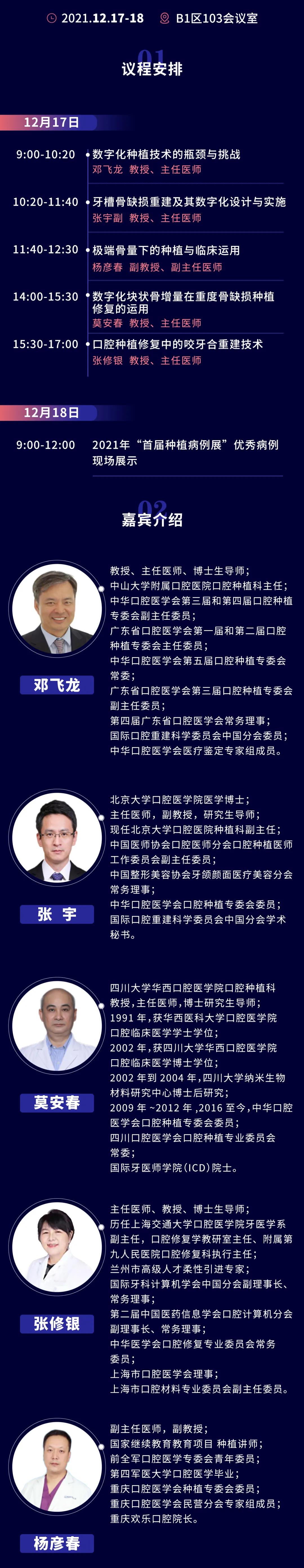 12月17-18日 ,口腔种植专委会2021学术年会将在南宁会展中心B1区103会议室隆重召开,届时将邀请多名国内知名口腔种植专家与大家一起共同探讨临床的新技术与新进展的最新动态。