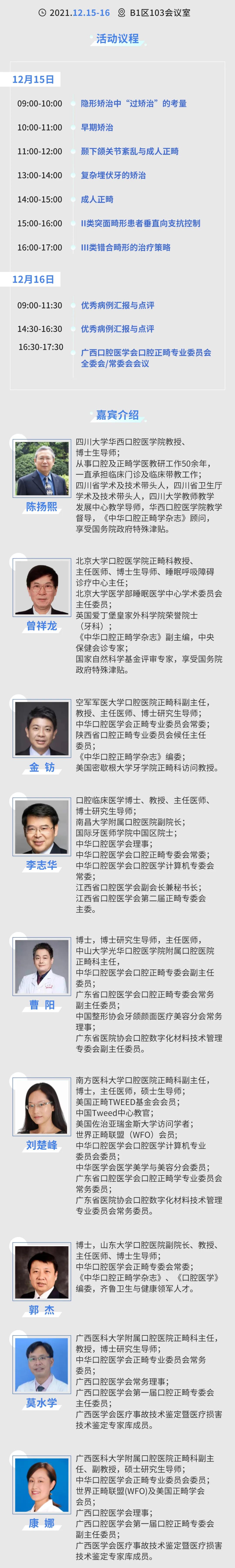 12月15-16日,口腔正畸学专委会2021学术年会将在南宁会展中心B1区103会议室隆重召开,届时将邀请多名国内口腔正畸学知名专家与大家一起共同探讨临床的新技术与新进展的最新动态。