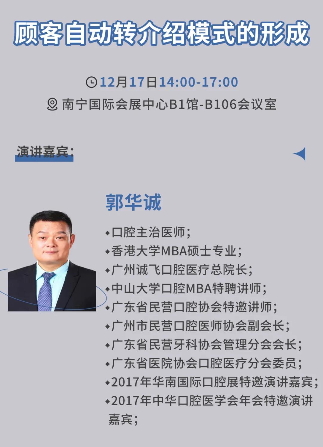 12月17日14:00-17:00,管理专场《“顾客自动转介绍模式的形成》将在南宁国际会展中心B1区106会议室开办,届时欢迎大家莅临参会,一起学习交流!
