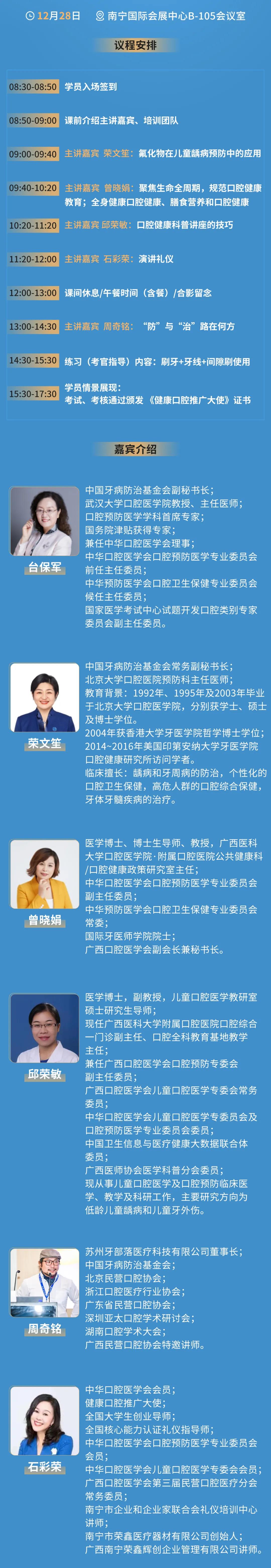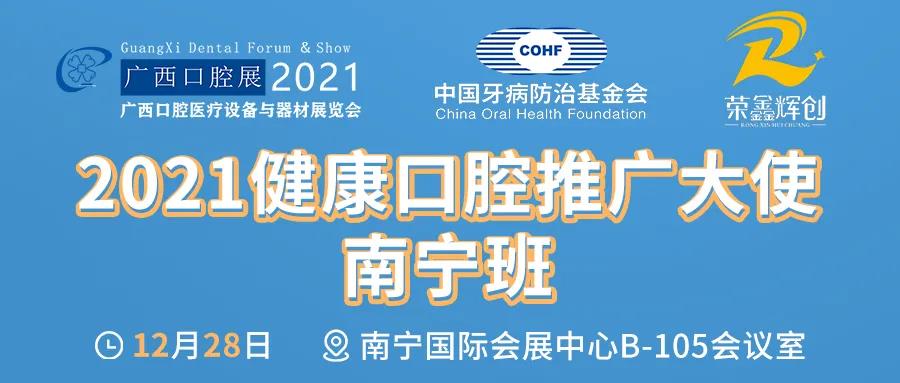 12月28日,2021健康口腔推广大使南宁班将在南宁会展中心B1区105会议室开办,届时欢迎大家莅临参会,一起学习交流!