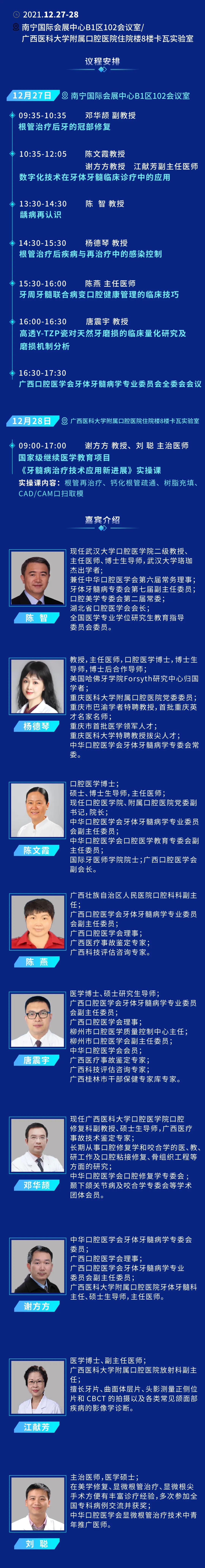 12月27日 ,牙体牙髓病学专委会2021学术年会将在南宁国际会展中心B1区102会议室隆重召开,12月28日,牙体牙髓病学实操班将在广西医科大附属口腔医院住院楼8楼卡瓦实验室开展,届时将邀请口腔领域牙体牙髓知名专家与大家一起交流学术思想、拓展学术视野,共同进步和提高。