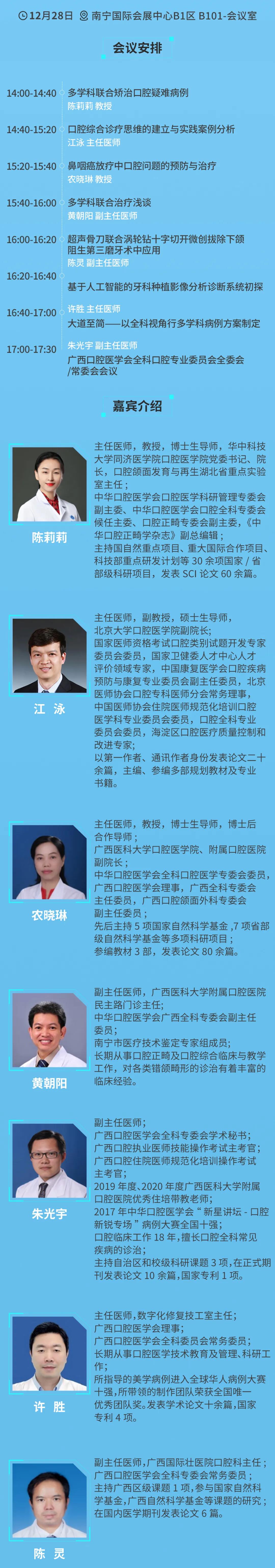 12 月 28 日,全科口腔专委会 2021 学术年会将在南宁国际会展中心 B1 区 101 会议室隆重召开,届时将邀请数名区内外口腔知名专家与大家一起共同探讨临床的新技术与新进 展的最新动态。