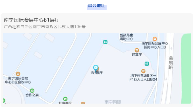 展会地址:南宁国际会展中心B1馆(南宁市青秀区民族大道106号)