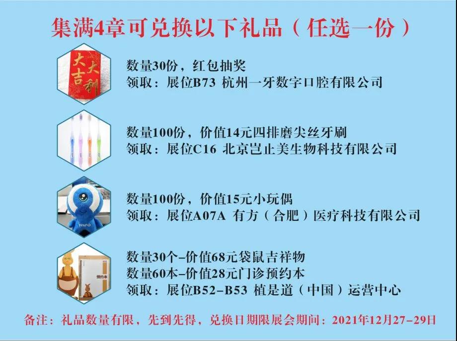 展会期间,带着组委会派发的集章纪念卡,分别到【A07A】【B52-B53】【C16】【B73】集章点集齐四章,集齐之后便可领取 集章礼品。(任选一份)