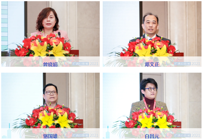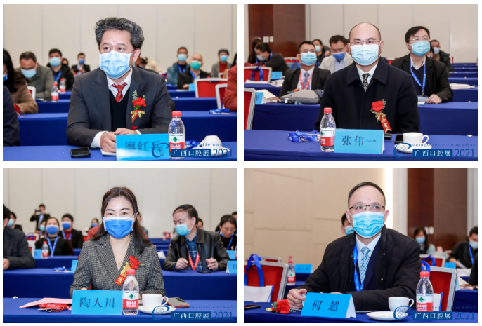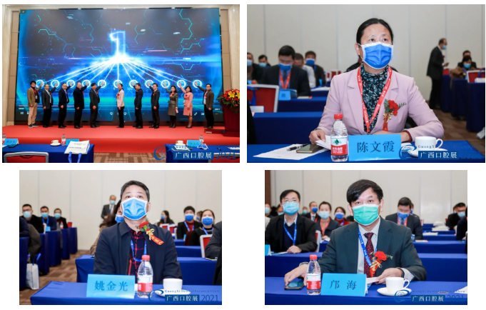 出席本次大会开幕式的嘉宾有:广西口腔医学会执行会长、广西医科大学附属口腔医院院长陈文霞教授;广西口腔医学会副会长、右江民族医学院校长姚金光教授;广西口腔医学会副会长、广西医科大学附属口腔医院党委副书记邝海教授;广西口腔医学会副会长、广西医科大学科技处处长廖红兵教授;广西口腔医学会副会长、原桂林市口腔医院院长张伟一主任医师;广西口腔医学会副会长、广西医科大学研究生院副院长陶人川教授;广西口腔医学会副会长、广西荣代口腔总院长何超先生;广西口腔医学会副会长兼秘书长、广西医科大学附属口腔医院公共健康科主任曾晓娟教授;梧州市医学会口腔医学分会主任委员邓文正教授;广州日晖会展服务有限公司总经理骆国雄先生;奥齿泰(深圳)商贸有限公司副总经理白昌元先生。