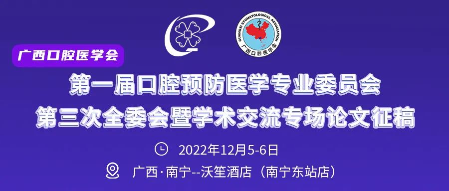 广西口腔医学会口腔预防医学专业委员会将于 2022 年 12 月 6 日在广西南宁市举行 2022 年广西口腔医学会第一届口腔预防医学专业委员会第三次全委会暨学术交流专场。即日起向广大口腔同仁征稿,经学术组与专家评定,将筛选后的优秀论文进行现场汇报,其他入选论文将以论文汇编的形式进行交流,所有入选征文由广西口腔医学会颁发证书。