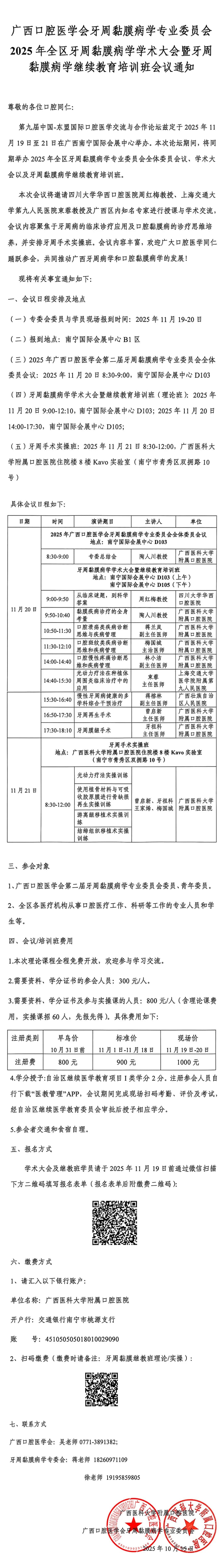 【同期活动】广西口腔医学会牙周黏膜病学专业委员会2025年全区牙周黏膜病学学术大会暨牙周黏膜病学继教班会议通知