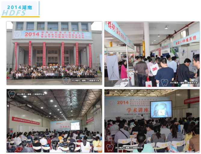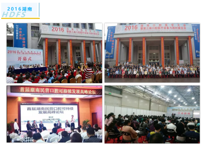 2014年5月16~18日和2016年5月20~22日,2018年5月 18-20日,2019年10月10-12日在长沙市湖南省展览馆成功举办了四届 “ 湖南口腔医学大会暨口腔医疗设备与器材展览会”(SDFS 2014、2016、2018、2019)。HDFS湖南是湖南史上最大规模的口腔医疗界的专业盛会。四届会展,共举办了152专题场次研讨会,演讲专家来自北大、武大、川大、中大、上海交大等70多家知名大学和和口腔医院、医学院、学会、协会以及台湾、香港、韩国、加拿大的知名口腔专家。四届展会的参展企业 450 家次, 参会参观的专业观众 14028 人,他们来自湖南、湖北、福建、江西、广西、云南、贵州、广东、海南、湖北等十省市。HDFS 2019湖南比2018 、2016、2014展商数增加了15.6%,专业观众增加了 36.8%。