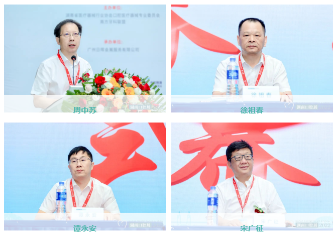 本次开幕式由湖南省医疗器械行业协会口腔医疗器械专业委员会主任委员周中苏主持,出席开幕式的领导和嘉宾有:湖南省工信厅消费品工业处徐祖春处长,湖南省药品监督管理局医疗器械监管处谭永安处长,湖南省医疗器械行业协会宋广征会长,湖南省口腔医学会荣誉会长翦新春教授,湖南省医院协会口腔医疗专委会名誉主委钟圣纯教授,中南大学湘雅口腔医院院长,湖南省口腔健康促进会会长唐瞻贵教授,湖南省口腔医学会蒋灿华会长,中山大学光华口腔医学院附属口腔医院林正梅副院长,广东省民营牙科协会常务靳华副会长,湖南省口腔医学会副会长、湖南省医院协会、口腔医疗专业委员会主任委员王月辉主任,湖南省医疗器械行业协会何丽红执行会长。