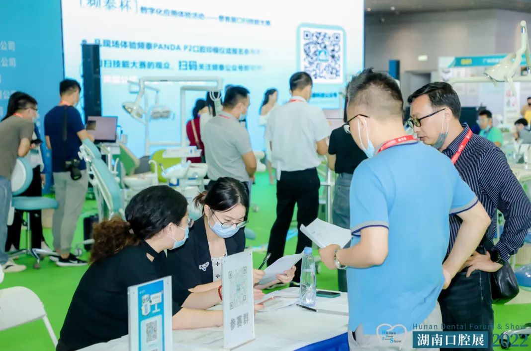 展厅数字化体验区,开设了以“数'智'口扫·深度赋能”为主题的“频泰杯”数字化应用体验活动暨首届口扫技能大赛。