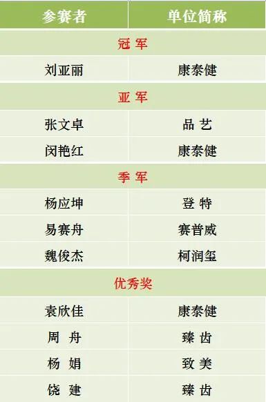 在现场五位专业评委的严格审核和观众们的一同见证下,这场比拼口扫技能综合实力的赛事,终于诞生了最终的冠亚季军及优秀奖名单。在如此严格的比赛规则和紧张的比拼氛围中,大家依旧能取得这样优异的成绩,实在是可喜可贺。