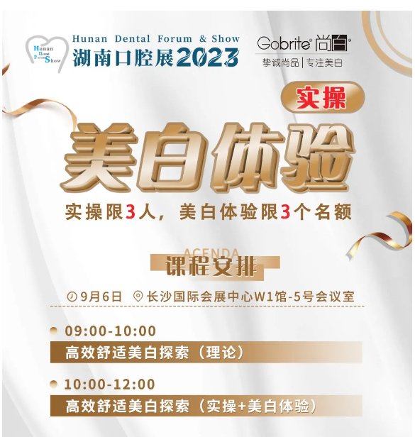 1 时间:9月6日09:00-12:00 2 地点:长沙国际会展中心W1馆-5号会议室 3 名额:理论课程名额不限,实操仅限3个名额,美白体验仅限3个名额(实操及美白体验不可重复报名) 4 实操及美白体验报名:转发本链接或课程海报至朋友圈集赞满18个即可添加客服微信,申请实操/美白体验名额,名额有限,先到先得。 5 报名方式: (1)理论课程,进入小程序即可免费听课; (2)实操/美白体验,转发集赞添加下方客服微信,申请实操/美白体验名额。