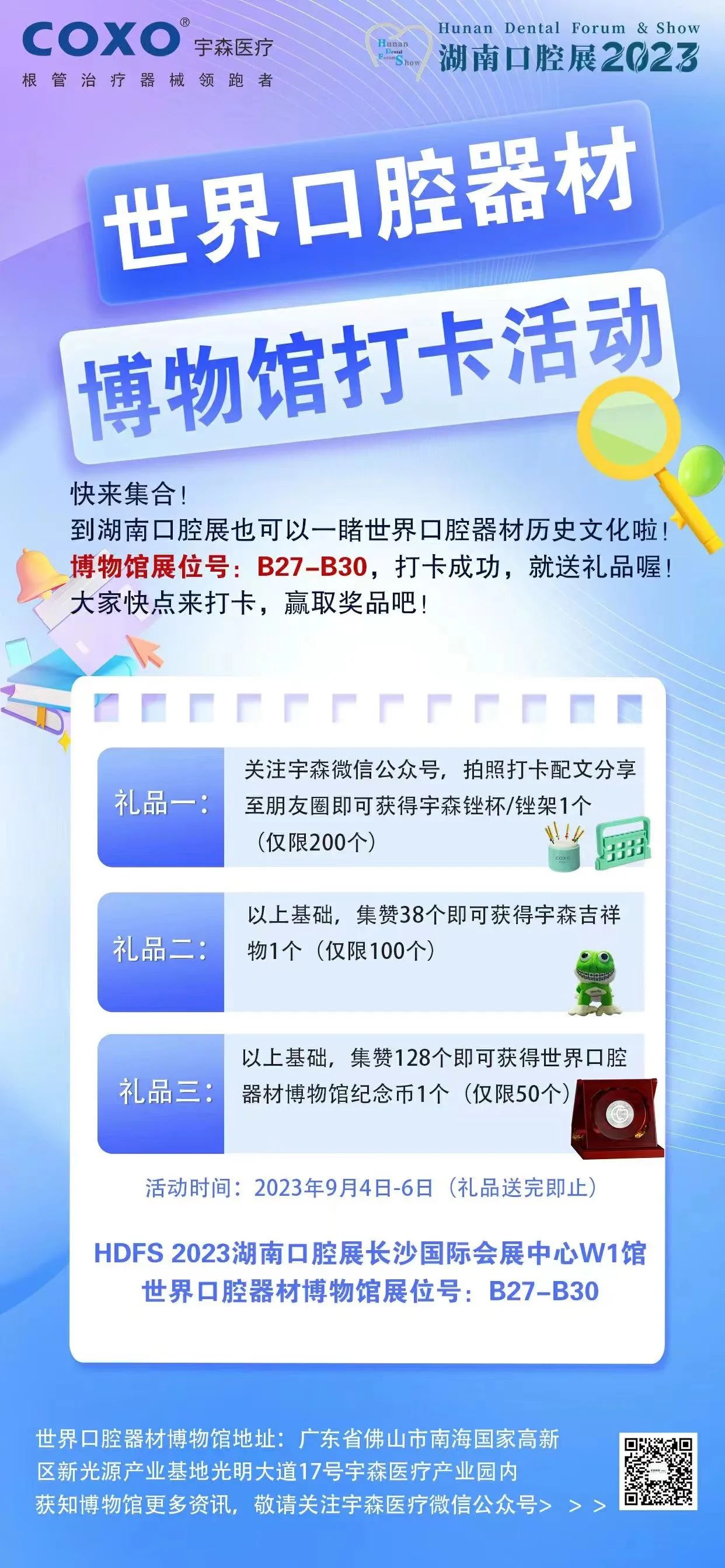 世界口腔器材博物馆携手第八届湖南口腔展来到了长沙,9月4-6日长沙国际会展中心-W1馆【展位号:B27-B30】,诚邀口腔同仁莅临现场一睹世界口腔器材历史文化!