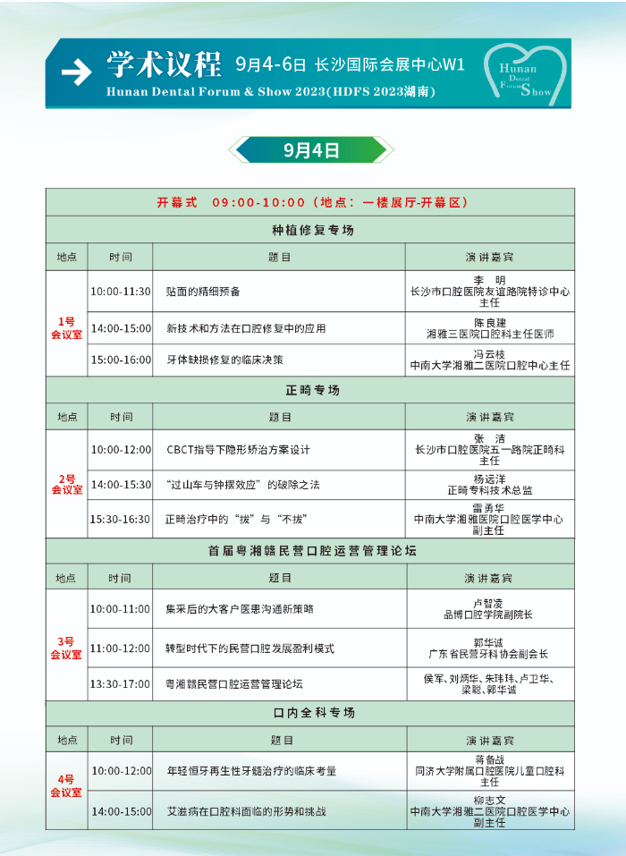 【最新版学术日程】9月湖南口腔展诚邀您的到来!
