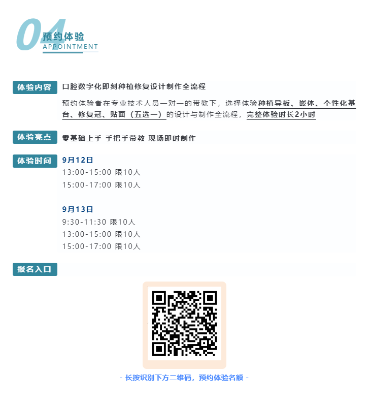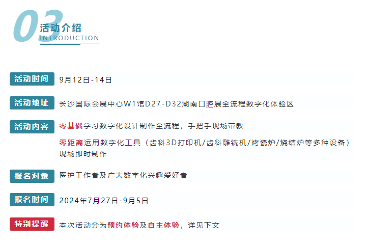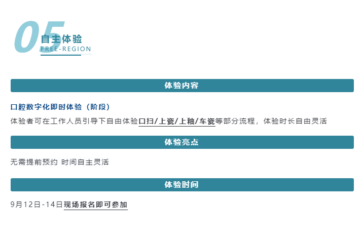 本届湖南口腔展特设口腔数字化解决方案体验区,可零距离感受数字化系统对口腔诊疗的赋能效果,欢迎广大口腔数字化兴趣爱好者前来实操体验!