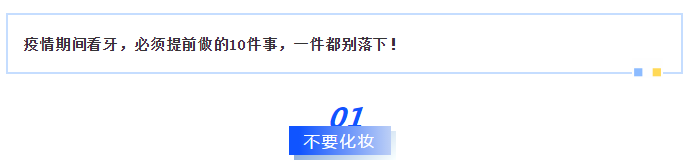 脸上的口红、粉底,很可能会污染医生的手套。首先,增加污染源;其次,如果要做相对复杂的治疗,譬如牙周翻瓣术,需要擦掉妆面,然后才能进入消毒程序,对医患双方都是个麻烦事。