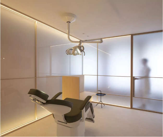 光与影的设计,本案在东方美学和冥想概念的设计灵感里,旨在营造柔和而平静的氛围。深层的意蕴通过极简的方式呈现出来:浅色木材为空间赋予了沉静之感,半透明的玻璃则能够捕捉光线的美好。空间边界暗藏的柔和灯光设计,释放出温暖安静的情绪,最大程度上缓解患者内心的紧张不安,这样的诊所不用多说就是让人内心平静感受美好的地方。
