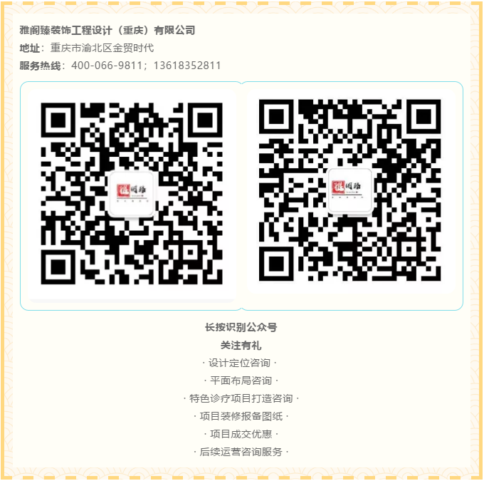 雅阁臻装饰以齿科医疗智能空间设计、装修为依托,为机构提供齿科行业资讯平台、 齿科行业技术学习平台、齿科行业个性化产品 定制服务、齿科行业VI运营、齿科行业新媒体 运营、齿科行业人力资源管理/商务管理/品牌营 销策划的管理咨询赋能一体化的综合运营服务。为医疗机构的规范健康发展助力!