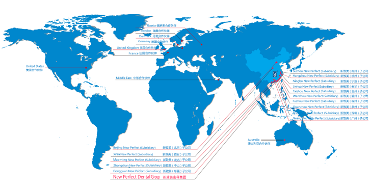 集团自成立至今,不断进行技术创新,积极改进工艺流程和引进国内外先进技术,是国内首批获得“国家高新技术企业”称号的义齿生产企业。公司拥有自身研发中心和研发团队,并与美国PTC公司等著名义齿技术培训企业展开长期合作,为保证公司技术先进性提供有力保障。同时,严格的原材料采购控制程序、一站式的全面服务、个性化的产品质量标准、规范的公司管理制度,让公司逐步朝“近距离,好服务”的市场服务理念迈进,目前,集团已在浙江、广东、福建、北京、江苏、陕西等省市开设了十六家子公司,产品及服务已覆盖国内外市场。