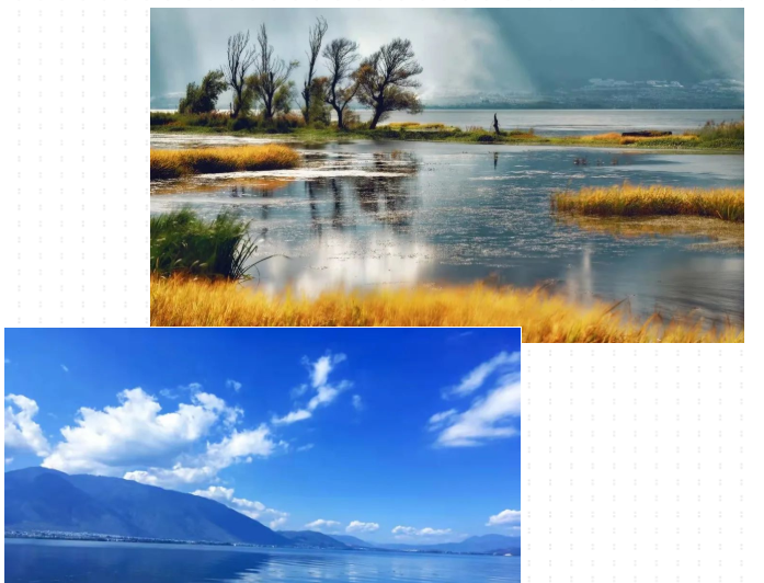 洱海气候温和,风光绮丽,素以“高原明珠”著称。洱海中有三岛——金梭、赤文、玉几;沿岸有四洲——马濂、鸳鸯、青莎、大鹳朋;水有九曲——莲花、大鹳、蟠矶、凤翼、萝莳、牛角、波作、高品、鹤翥。三岛、四洲、九曲景致优美,是游览洱海、休闲度假的好地方。