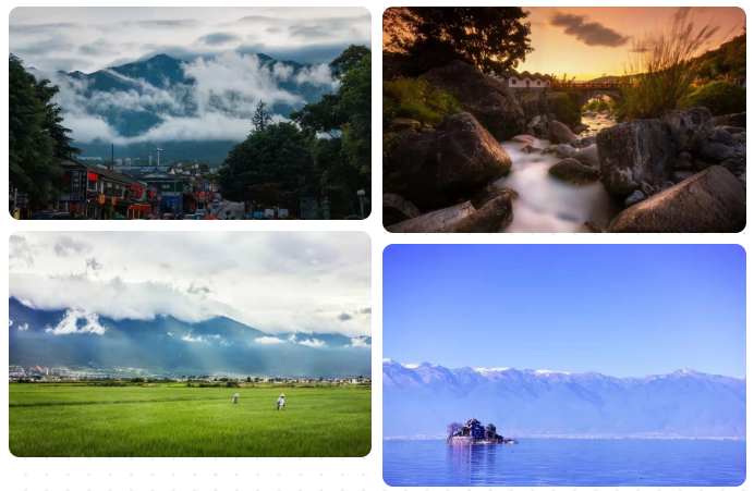双廊风光以背负青山,面迎洱海、紧连鸡足、远眺苍山而独秀。既有渔田之利,舟楫之便,更拥有“风、花、雪、月”之妙景,享有“苍洱风光在双廊”的美誉,登上南诏风情岛,更可目睹17米高的汉白玉观音拜弥勒佛山的奇观。