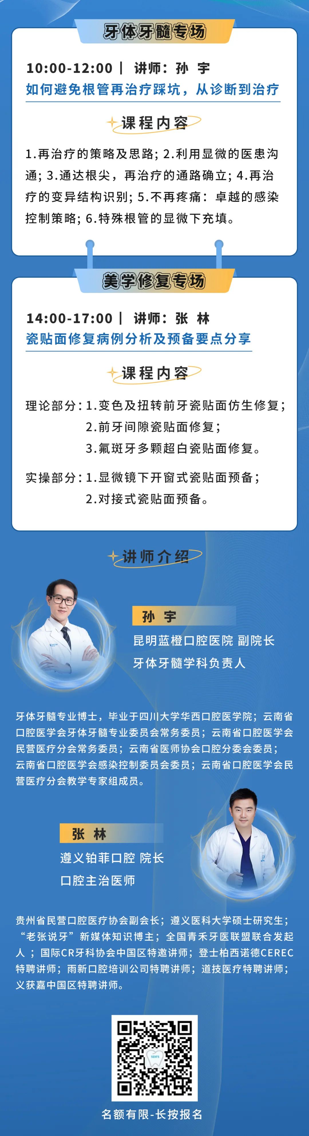 大会主办方联合速迈于6月21日在大理国际大酒店-六合同春B会议室同期开设【牙体牙髓专场】&【美学修复专场】。诚邀各位口腔同行届时莅临现场一起参会学习交流!