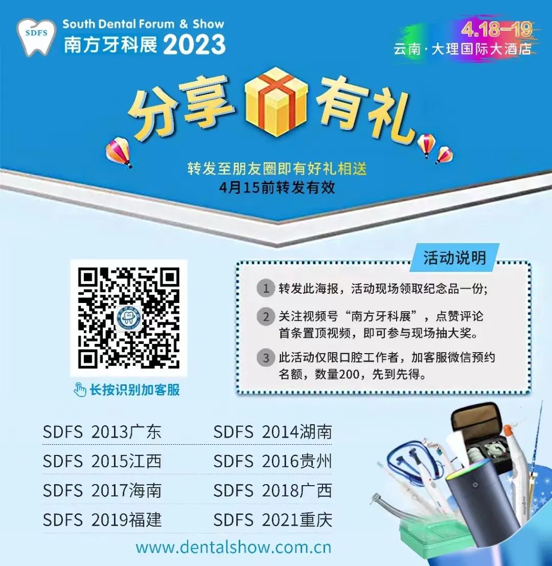 为加强云南与南方各省市的口腔医疗技术交流,促进口腔医疗事业的发展,加快新设备新材料与临床治疗的融合,南方牙科联盟、云南省口腔医学会民营口腔医疗分会将于4月18-19日在云南·大理国际大酒店举办“2023南方口腔医学大会暨第九届南方牙科器械与耗材展览会”。