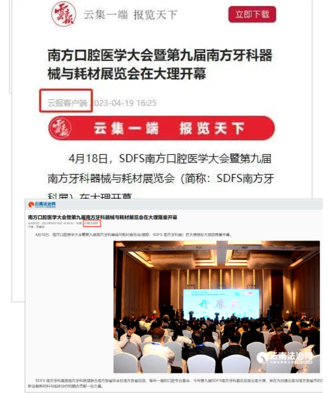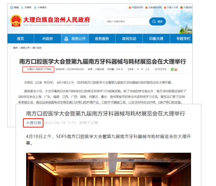 本届南方口腔医学大会暨南方牙科展在大理举行,开幕首日现场火爆,多家当地媒体抵达大会现场进行拍摄记录。会后,大理州政府网、大理日报、大理融媒、开屏·昆滇(春城晚报)、云报、大理法治网等当地媒体进行了后续报道。