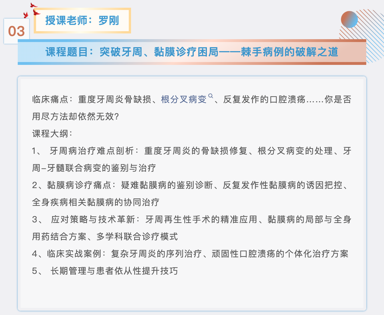 ✅ 多学科融合:种植、牙周、牙体牙髓、外科专家同台,帮你建立全局诊疗思维。